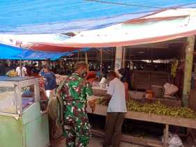 Sosialisasikan Pencegahan Covid-19, Sertu Heriyanto Datangi Pasar Tradisional