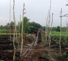 Pendampingan Karya Nyata, Sertu Mahyudin Gotong Royong Memasang Tiang Pancang