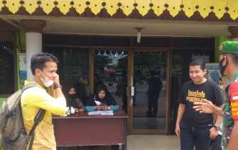 Babinsa Kelurahan Bukit Timah Serka Fahrizal Purba, Lakukan Pengecekan Suhu Tubuh di Pos Pemeriksaan
