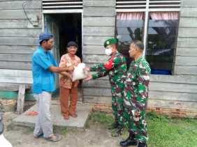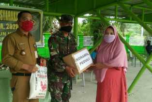 Babinsa Kelurahan Bukit Kayu Kapur, Pelda M.Meha Dampingi Lurah Bagikan Sembako ke Masyarakat
