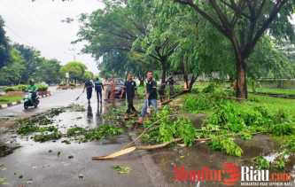 Dihantam Angin Ribut, Sejumlah Pohon Bertumbangan, DLH Dumai Lakukan Pembersihan