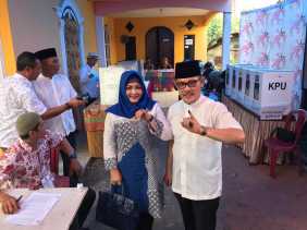 Bersama Anak dan Istri, Zul AS Nyoblos di TPS 16 Sukajadi