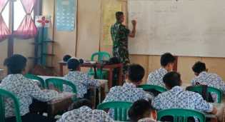 Disela Kesibukan, Satgas TMMD Ini Juga Ajarkan Wawasan Kebangsaan kepada Pelajar
