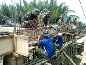 Satgas TMMD ke-106 Kodim 0314/Inhil dan Tukang Saling Membahu Kerjakan Pembangunan Jembatan Beton