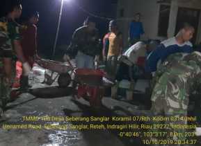 Malam yang Gelap Bukan Jadi Halangan, Satgas TMMD ke 106 Kodim 0314/Inhil Lembur
