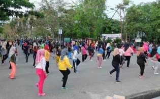 Arena Senam Pagi di Jalan Swarna Bumi Dipadati para IRT