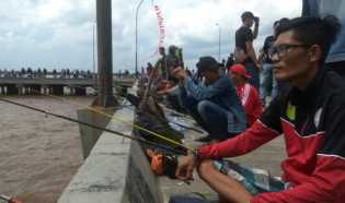 Ratusan Pemancing Buru Udang Galah di Parit 21 Tembilahan