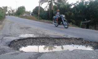 Jalan Lintas di Teluk Kuantan Berlubang dan Rawan Kecelakaan