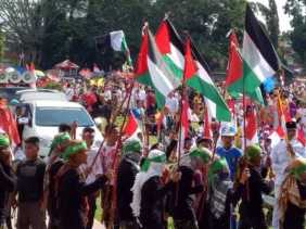 Bendera Palestina Berkibar Pada Pawai Karnaval di Lapangan Limuno Teluk Kuantan