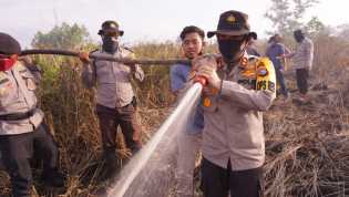 Kapolres Pelelawan Pimpin Pendinginan Lahan Gambut yang Terbakar di Pangkalan Kerinci