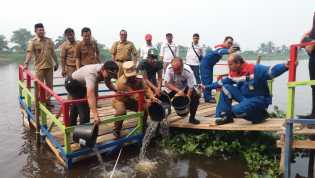 Wabup Rohil dan GM Pertamina RU II Dumai,Tebar 10 Ribu Benih Ikan Patin Di Sungai Rokan