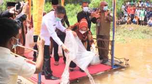 Pemkab Rohil Tabur Ribuan Benih Ikan Baung di Sungai Rokan