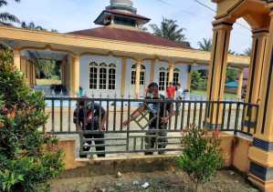 Satgas TMMD Kodim Rokan Hilir Goro Bersama Warga Melakukan Pengecatan Pagar Masjid
