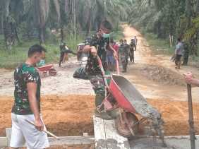 TNI dan Warga Lanjutkan Penimbunan Box Culvert di Dusun Suka Mulya Jaya