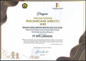 PT SPR Langgak Raih Penghargaan Subroto Bidang Keselamatan Migas Dari Kementrian SDM RI