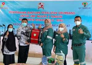 PT SPR Langgak Beri Drumband kepada SMP 5 Tandun